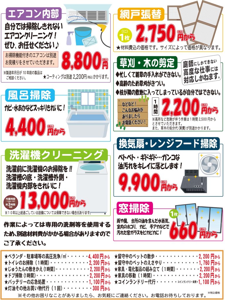 お掃除機能付きのエアコンは別お見積りをさせていただきます。